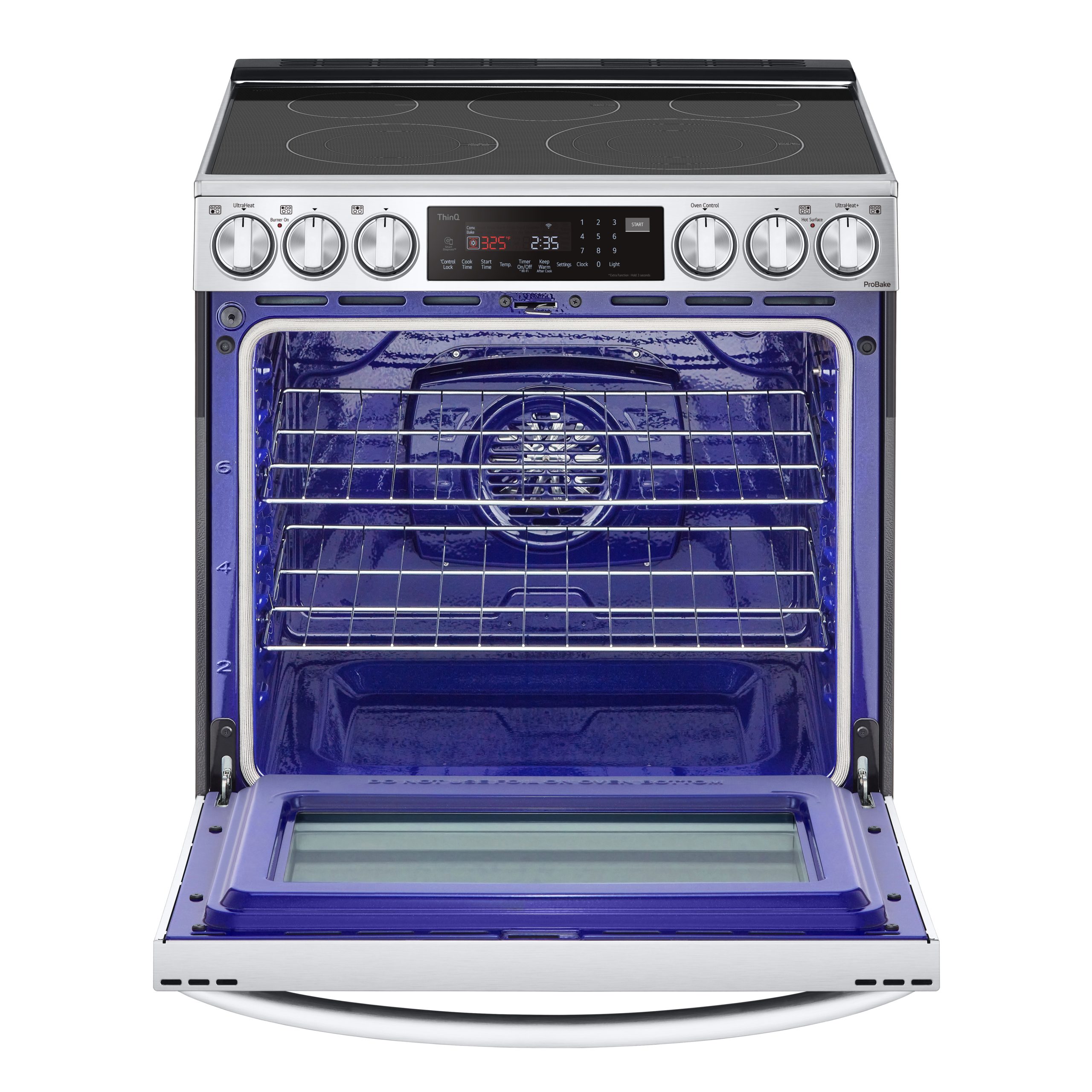 Le système ProBake ConvectionMD de LG permet d’obtenir une température précise et uniforme sur chaque grille, en tout temps. Inspirée des cuisinières professionnelles, il s’agit de la toute première cuisinière non encastrée dotée d’un élément chauffant situé à l’arrière du four, plutôt que sur la partie inférieure. Ainsi, vos biscuits, gâteaux, rôtis et autres plats seront toujours dorés à la perfection.