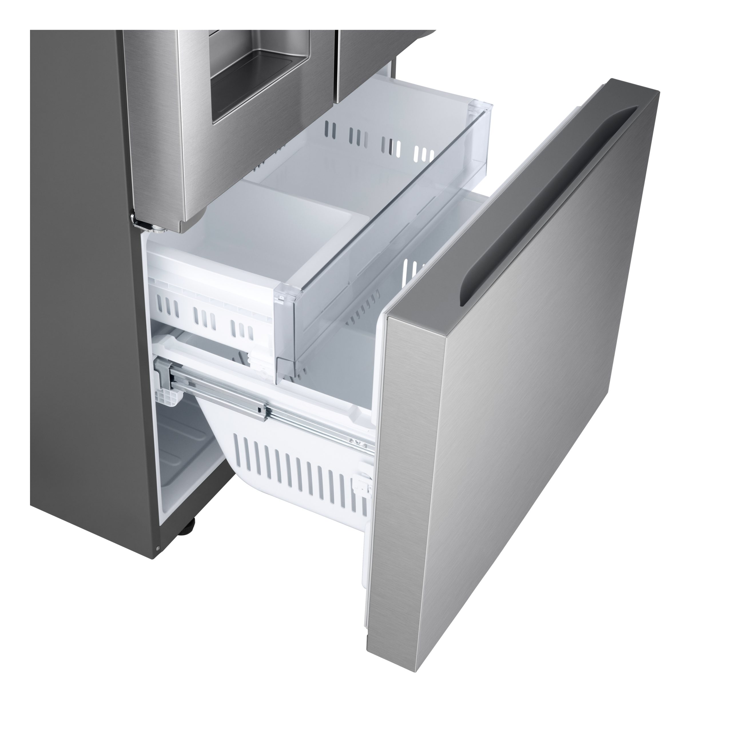 Les machines à glaçons sont formidables, sauf lorsqu’elles vous empêchent de ranger tous vos aliments dans le réfrigérateur. Notre machine à glaçons profilée Slim SpacePlusMD novatrice est située dans la porte du congélateur, ce qui vous offre plus d’espace de rangement dans le réfrigérateur.