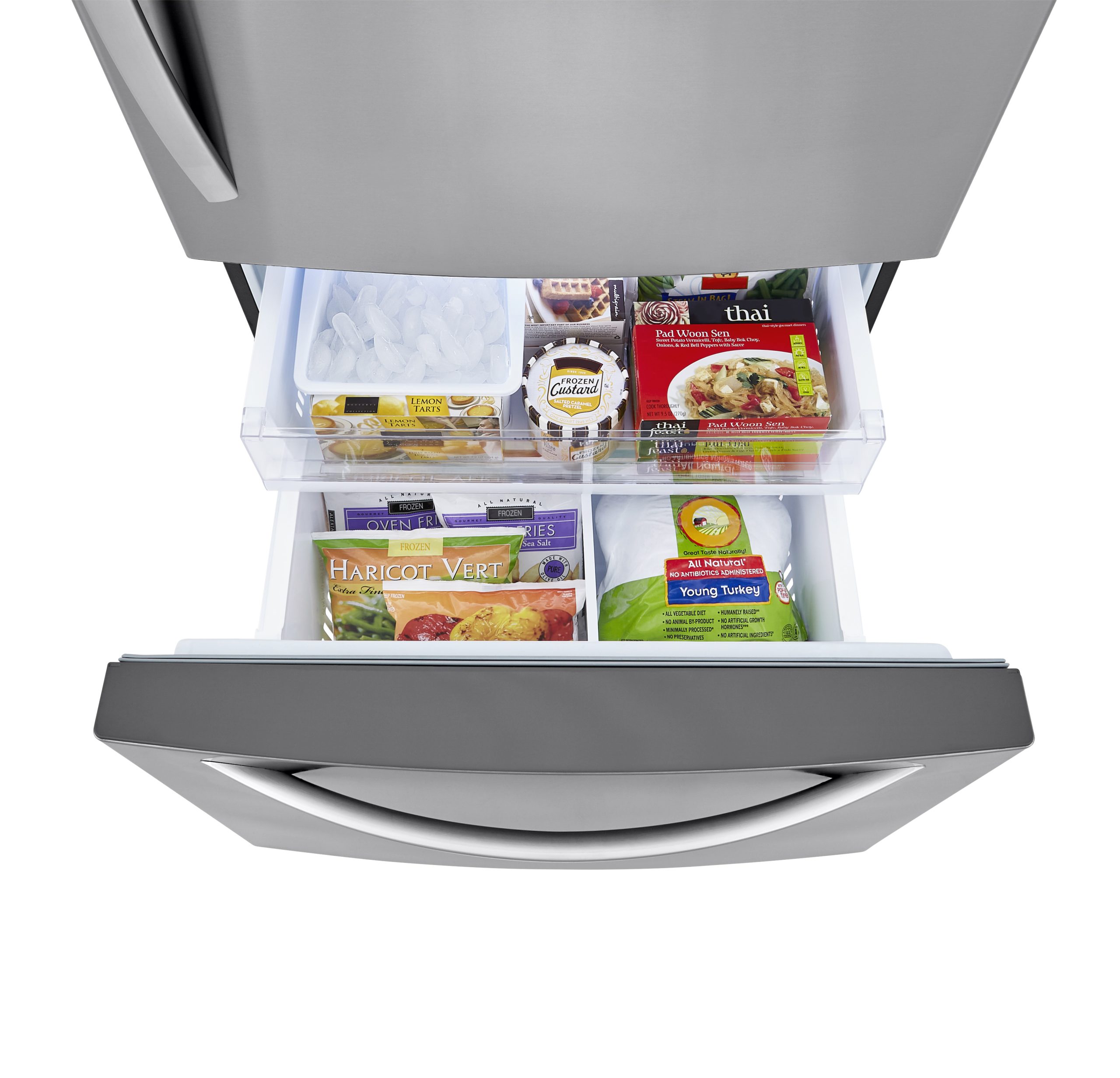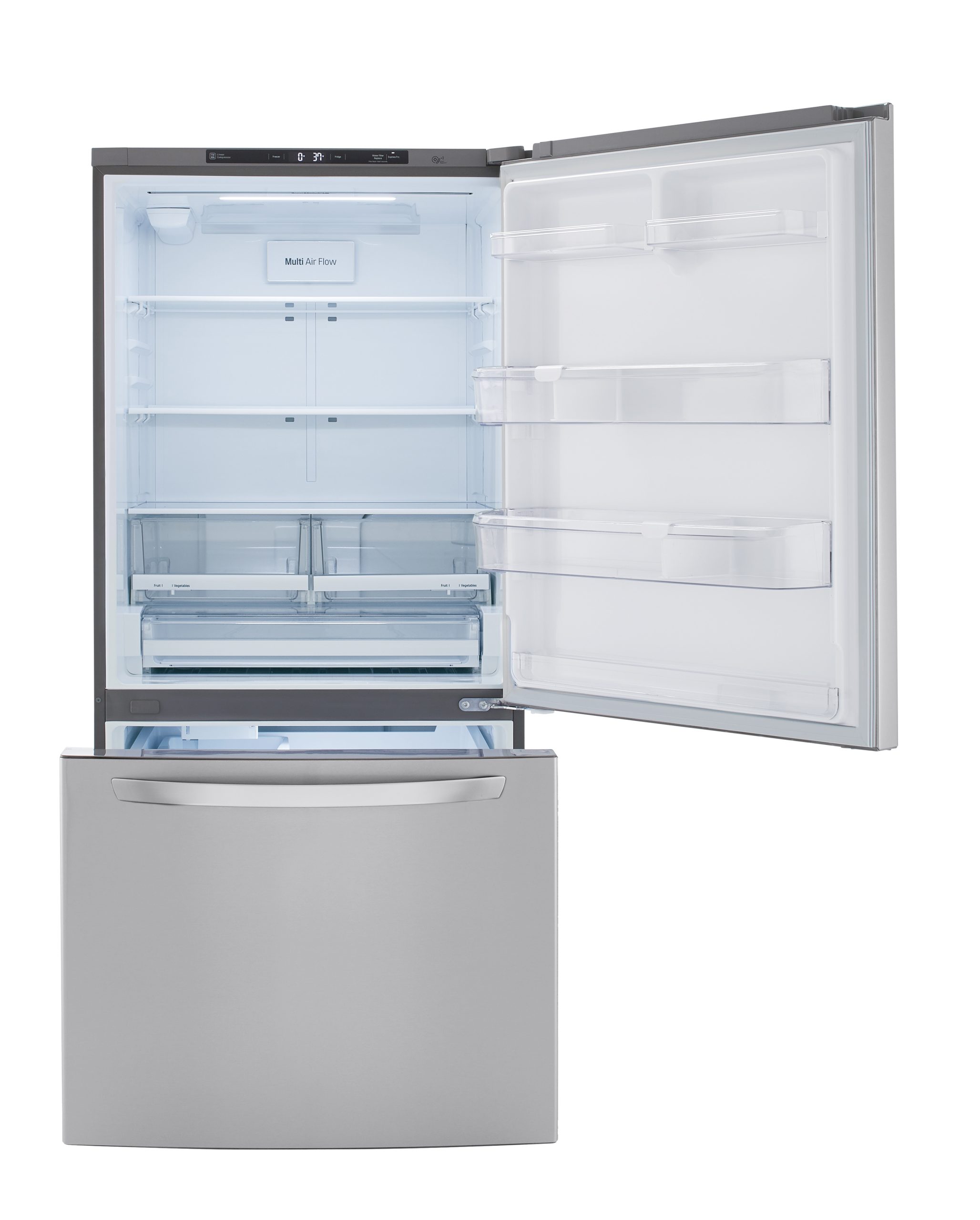 Conservez tout ce dont vous avez besoin. Doté d’une énorme capacité de 26 pi³, le réfrigérateur avec congélateur au bas LG vous procure amplement d’espace pour conserver tous les aliments préférés des membres de votre famille tout en offrant un rangement pratique et accessible.
