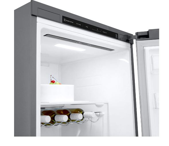 LG a fait passer son système de refroidissement intelligent au niveau supérieur en ajoutant la fonctionnalité Refroidissement+ de la porte : grâce à un débit d’air frais constant, les articles rangés dans les balconnets conservent une fraîcheur optimale.