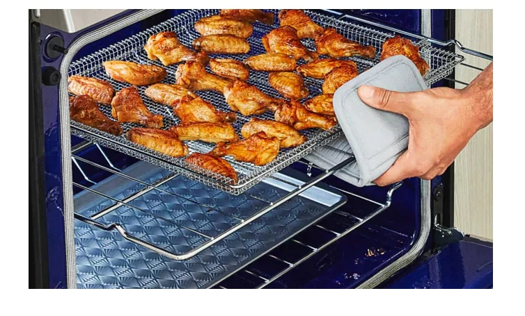 Désormais, vous pouvez vérifier l’état de cuisson des aliments en un instant, en cognant deux fois. La fenêtre InstaViewMDvous permet de voir l’intérieur de votre four sans jamais ouvrir la porte et laisser la chaleur s’échapper. Elle est aussi très grande pour vous permettre d’en voir encore plus.
