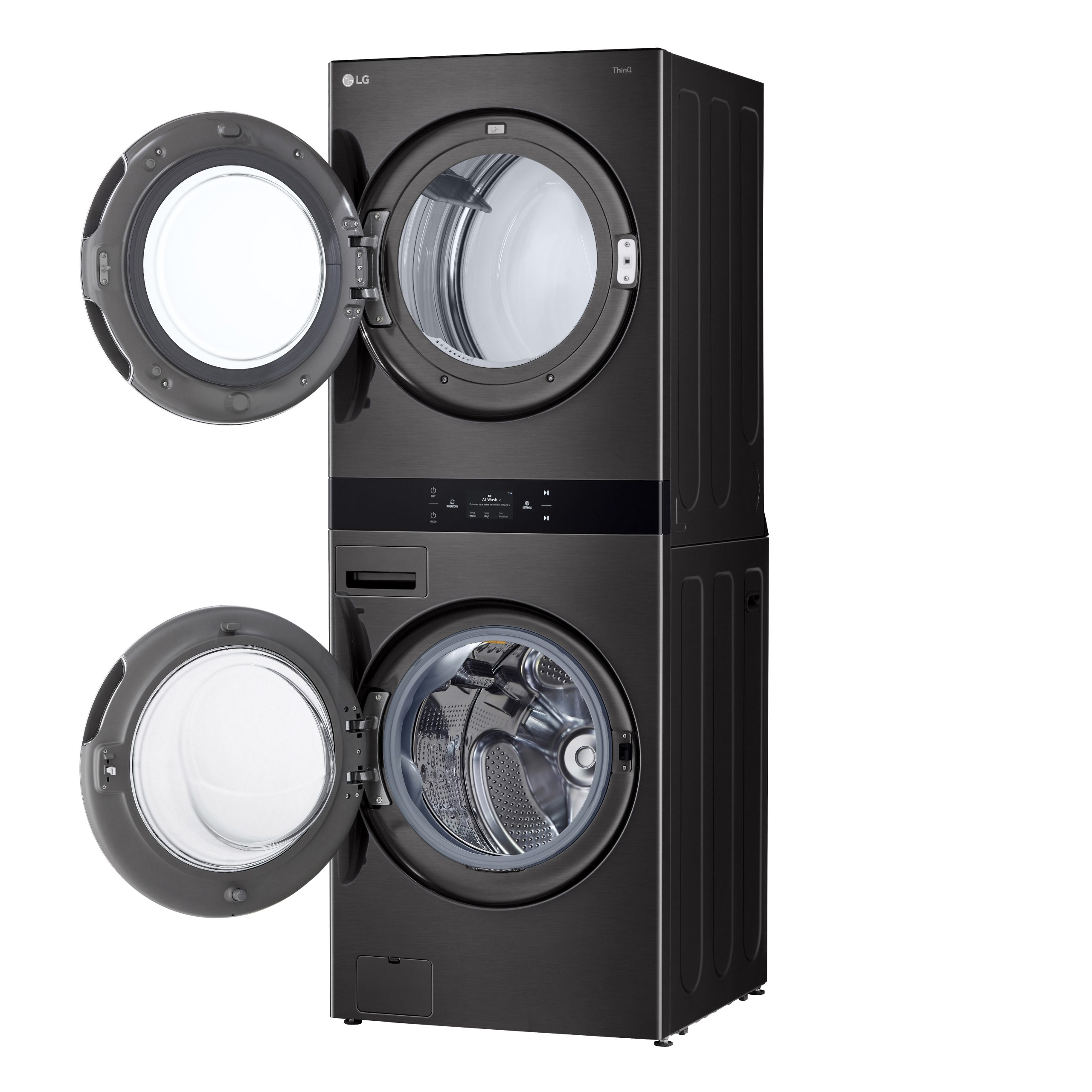Inutile de trier les vêtements ou de choisir un cycle de lavage; les capteurs intégrés font appel à la technologie AI pour détecter la texture du tissu, le degré de saleté et la taille de la brassée, puis personnalisent les mouvements et les températures de lavage et de séchage.