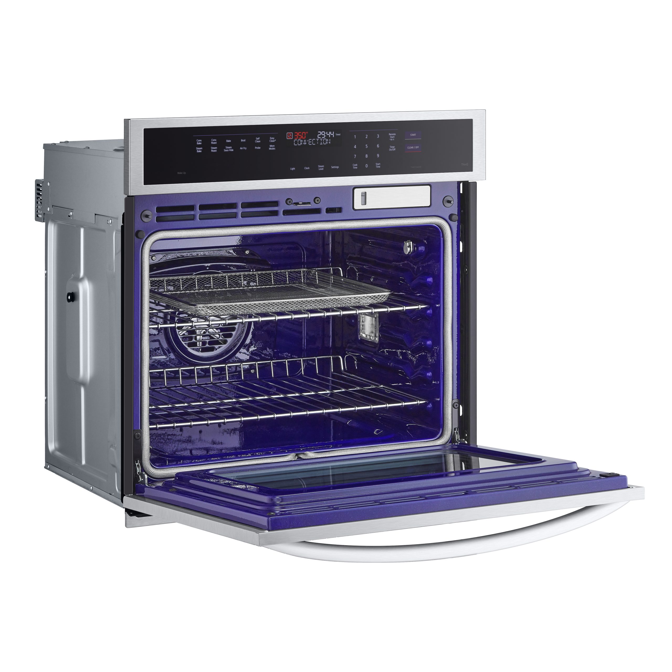Grâce à un troisième élément chauffant fixé au ventilateur, la technologie de convection véritable de LG distribue la chaleur et fait circuler l’air chaud de façon précise pour garantir une cuisson uniforme des aliments sur chaque grille. Profitez de repas délicieusement dorés et croustillants, et d’un préchauffage et d’un temps de cuisson plus rapides*.