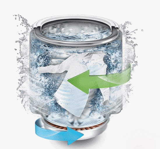 Le pulsateur et la cuve tournent dans des directions opposées, générant de forts courants d’eau pour faire circuler les vêtements à gauche et à droite pour un effet de lavage en douceur, mais puissant.